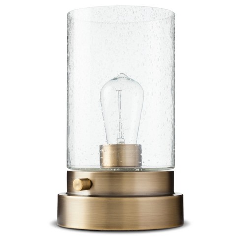 The metal table lamp pairs perfectly with the glass shade for a true industrial look and the antique finish gives simple vintage like appeal.